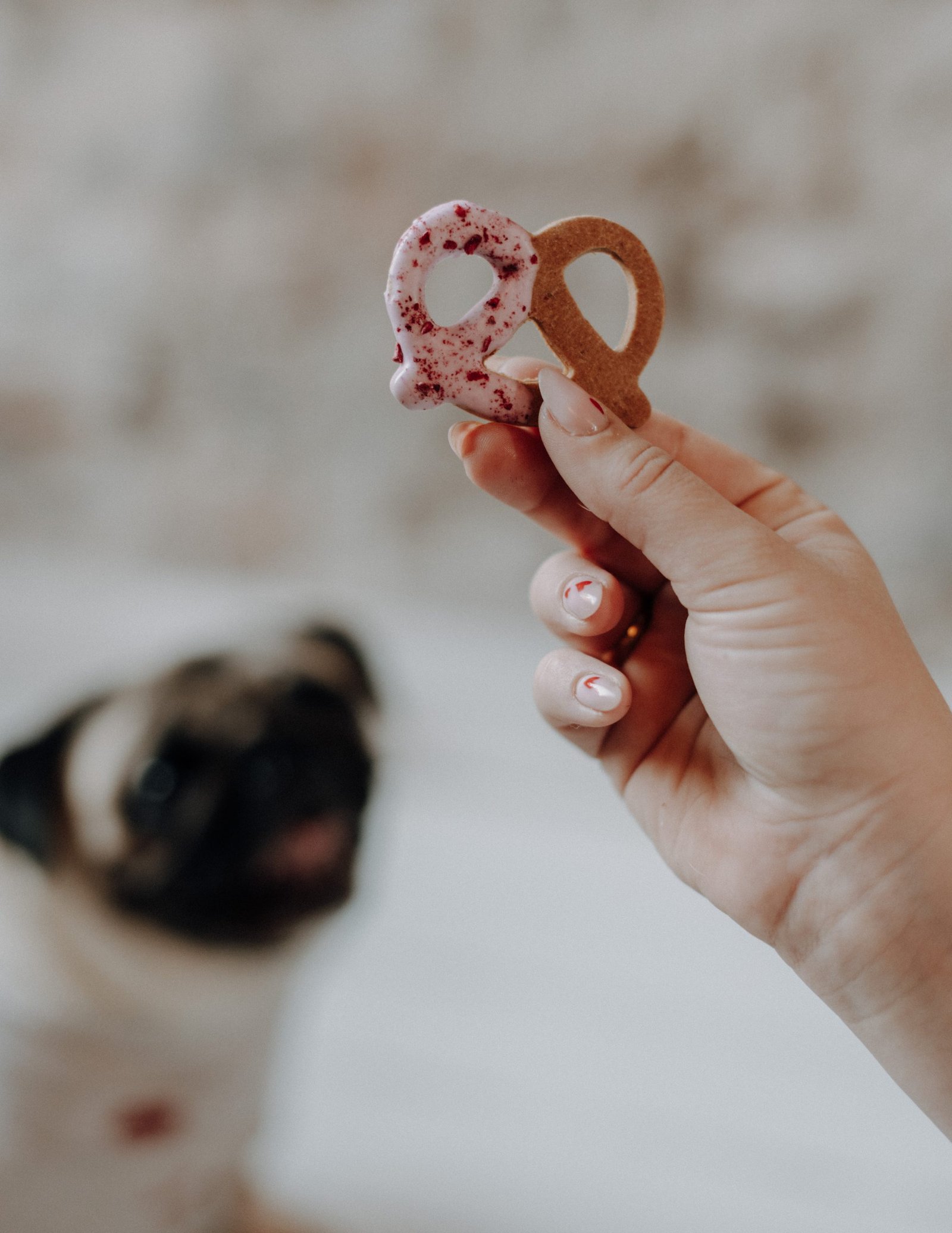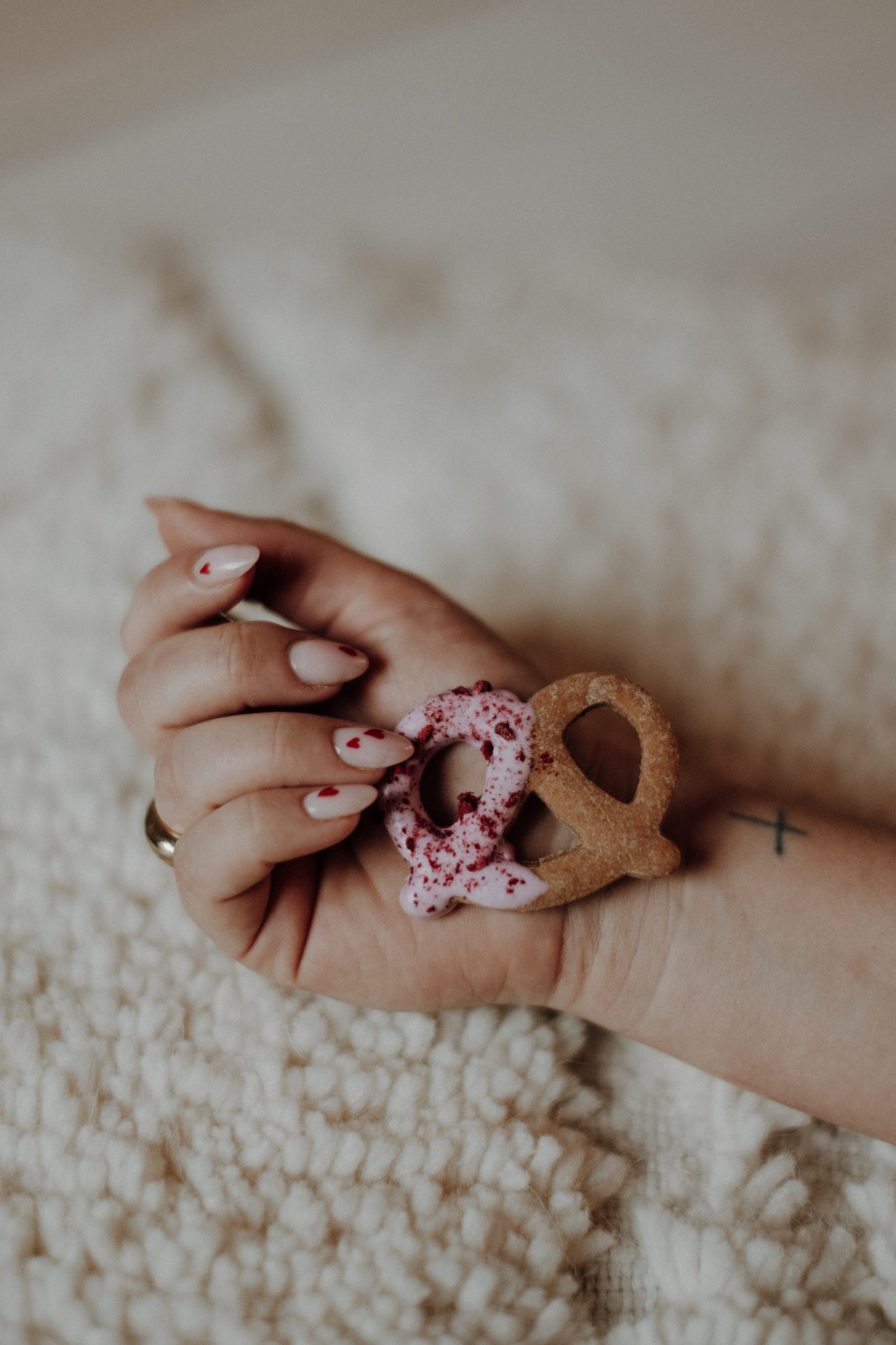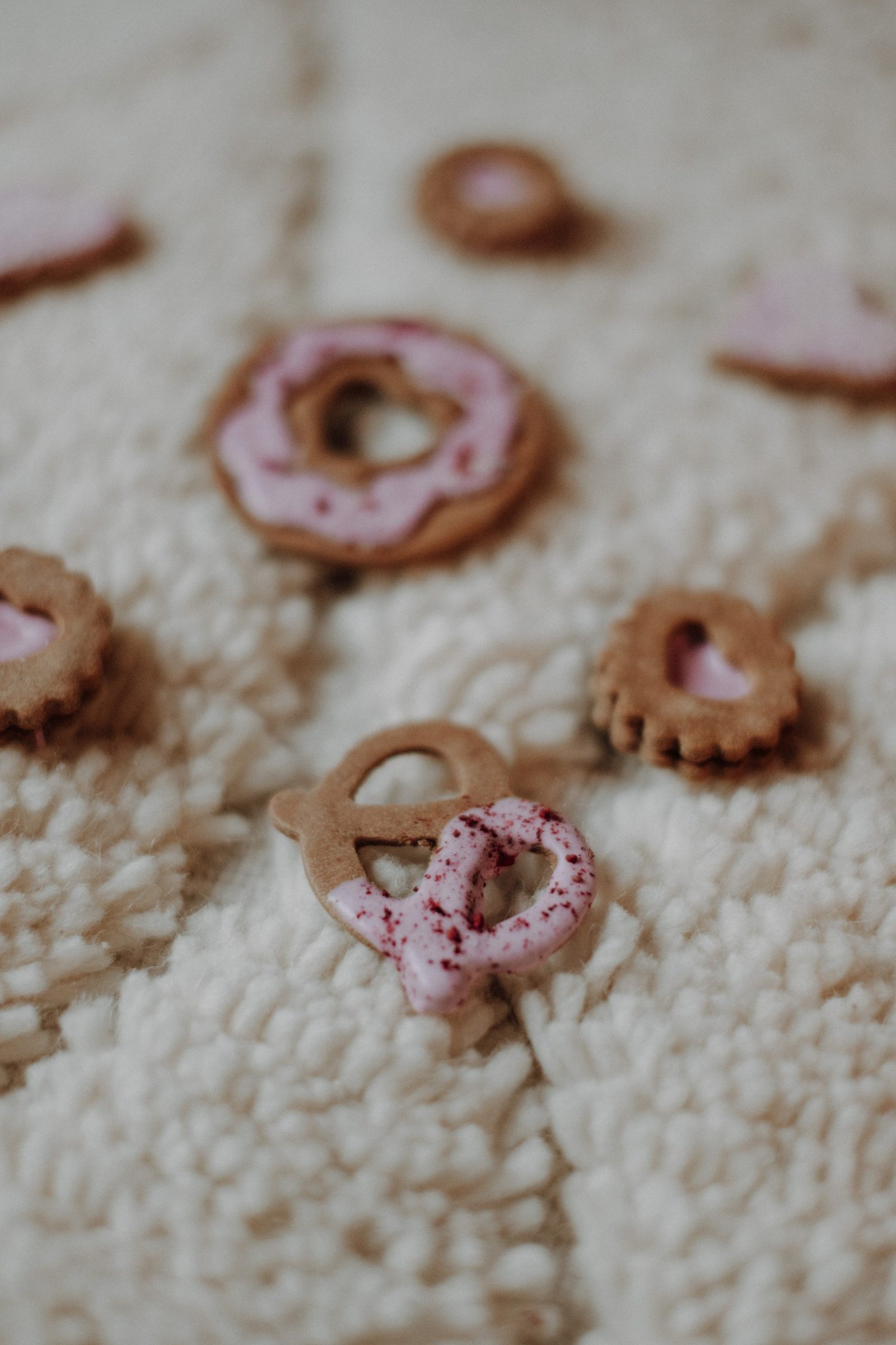 Pretzels geglazuurd met suikervrije yoghurt icing. Gekleurd met bietenpoeder & afgewerkt met gedroogde frambozen. Sounds lovely right?! Wordt verpakt per 2.