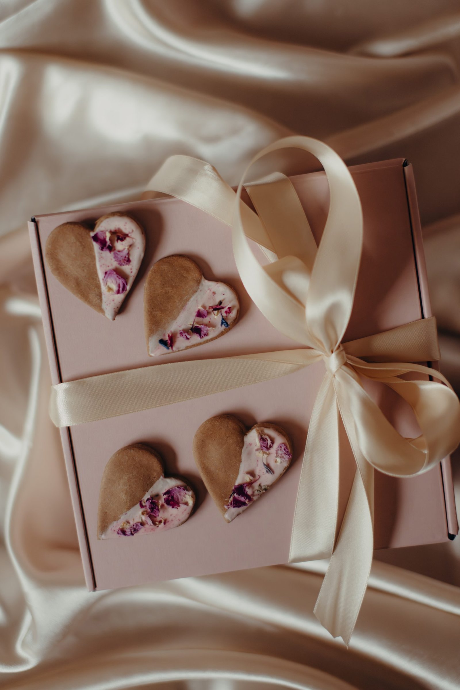 Give me roses & i’ll eat them. Deze té leuke hartjes werden gedecoreerd met onze suikervrije yoghurt icing & afgewerkt met rozenblaadjes.